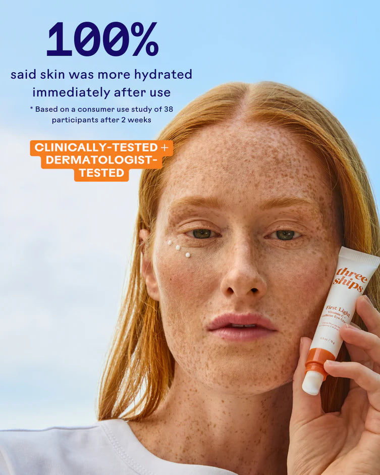 This three-step, dermatologist-tested routine brightens and revives your under-eye area. Our Purify Cleanser gently removes impurities to prep skin. Our Brighter Days Biodegradable Eye Masks deliver a brightness boost with Red Algae and upcycled Avocado Extract, while the First Light Brightening Eye Cream visibly depuffs and reduces the look of dark circles with Vitamin C-packed Acerola Cherries and upcycled Caffeine Extract.